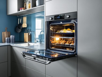 Backöfen mit unterteilbarem Garraum – auch das gibt es inzwischen: Eine spezielle Trennplatte sorgt dafür, dass Sie im selben Backofen zwei verschiedene Gerichte bei unterschiedlichen Betriebsarten, anderen Temperaturen und ohne Geruchsübertragung garen können. Den Garraum aufzuteilen, lohnt sich auch, wenn kleinere Gerichte zubereitet werden sollen. Dann nutzt man einfach nur eine Hälfte des Backofens und spart dadurch Strom und Zeit! Erkundigen Sie sich bei uns nach solchen Ofenmodellen!
