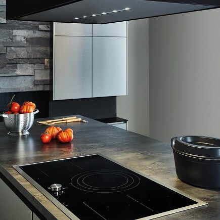 Induktionskochfelder haben am Herd einiges verändert, nicht nur die Physik der Speisenerhitzung, sondern auch die Möglichkeiten der Steuerung. Induktionskochfelder sind nämlich koppelbar mit dem Dunstabzug – ganz gleich ob dieser im Kochfeld integriert ist oder als Decken- oder Wandhaube oberhalb davon angebracht ist.